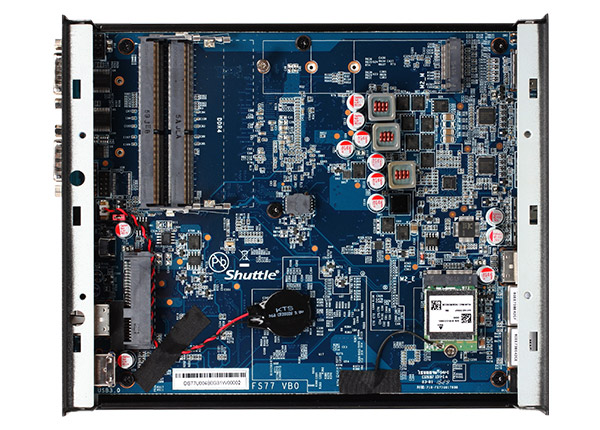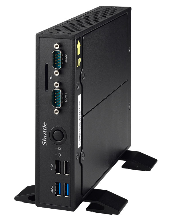 Bei minimalen Abmessungen von 20 x 3,95 x 16,5 cm (TBH) wartet DS77 auf der Rückseite mit zwei Intel Gigabit Ethernet-Schnittstellen auf und verfügt über 2x USB 2.0, 1x DisplayPort 1.2, 2x HDMI 1.4b sowie Audio-Anschlüsse. Ebenfalls auf der Rückseite befindet sich ein mehrpoliger Pin-Anschluss, über den das Gerät aus der Ferne gestartet werden kann (z.B. bei einem schwer zugänglichen Festeinbau). Auf der Vorderseite runden ein Cardreader, jeweils zwei USB 2.0 und 3.0 Anschlüsse sowie zwei RS-232 Schnittstellen die Anschlussvielfalt ab. Als Betriebssysteme eignen sich Windows 10 (64-Bit) und Linux.