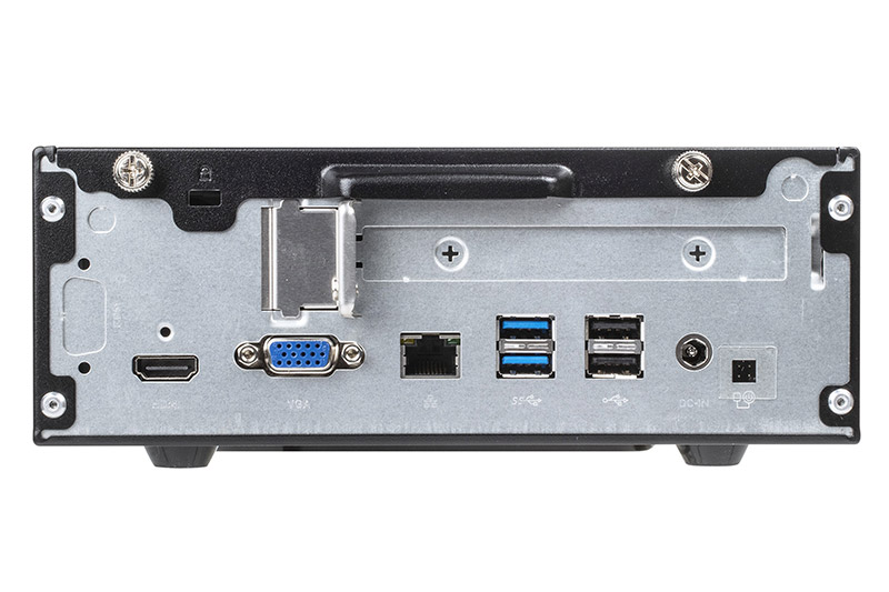 Das Herzstück des XH410G bildet klar der vollwertige PCI-Express-x16-3.0-Steckplatz, der den Anwendungsmöglichkeiten nur wenige Grenzen setzt. Denn in dem nur knapp 8 cm flachen Mini-PC lassen sich fast beliebige Erweiterungskarten im Single-Slot-Format einbauen. Er eignet sich für Grafik- oder Erweiterungskarten mit x1- bis x16-Anschluss (z. B. für 10-Gbit-Netzwerk, Thunderbolt, Sound-/Video-Capture-Card, TV-Tuner, PCIe-SSD uvm.) im Single-Slot-Format. Die zum jetzigen Zeitpunkt schnellste unterstützte Grafikkarte bildet etwa die NVIDIA GeForce GTX 1650 von Inno3D.