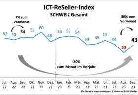 Die Preise fallen weiter. Allein innerhalb nur eines Monats um -6%. Über 12 Monate sind ICT-Artikel um deutlich -14% günstiger geworden und über 24 Monate sind die Preise um inzwischen -10% gefallen. Die Lager sind weiter voll. Punktuelle Rabattangebote sorgen für eine Entlastung. Bei Laptops wurden Preise z.T. um 50% reduziert, um Kunden zum Kaufen zu bewegen. Mit derartigen Angeboten konnte das Geschäft im Vergleich zum sehr schwachen August im Berichtsmonat September wiederbelebt werden.