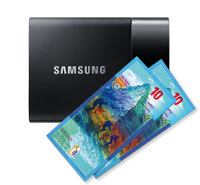 Portables SSD Portfolio mit Samsung Semi Conductors SSD Portable T1 mit 250 GB + 20 Franken Reka-Checks