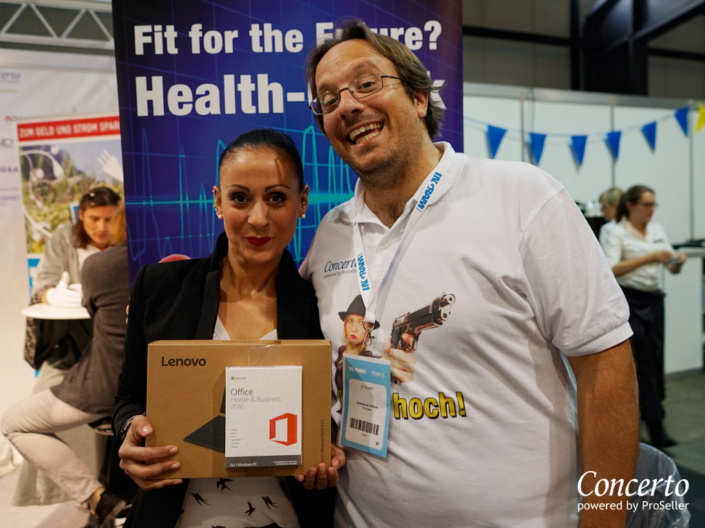 Schon einen Monat vor der TOP16 konnten die Reseller mit Concerto gewinnen. Während vier Wochen fanden Logo-Jagden mit den Sponsoren Lindy, APC, Windows und Netgear statt. Die 12 Gewinner freuten sich, Ihre Preise im Gesamtwert von über 4’700 Franken an der TOP16 entgegennehmen zu dürfen. Doch auch die anderen Standbesucher erwarteten tolle Sofortpreise.