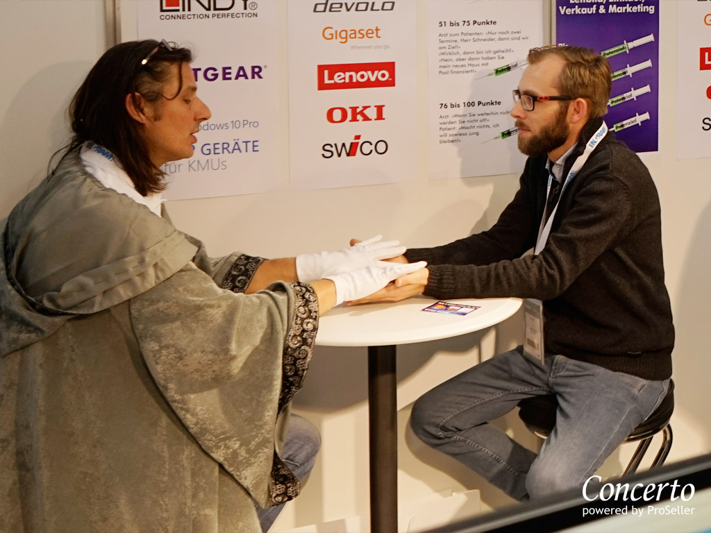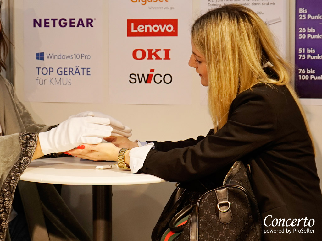 Ein besonderes Highlight war der Concerto-Wahrsager, der beim Handlesen interessante und lustige Zukunftsperspektiven ermittelte und ausserdem den Puls checkte. Viele Messe-Besucher haben zudem die Chance genutzt und einen Firmen-Quick-Check durchführen lassen.
