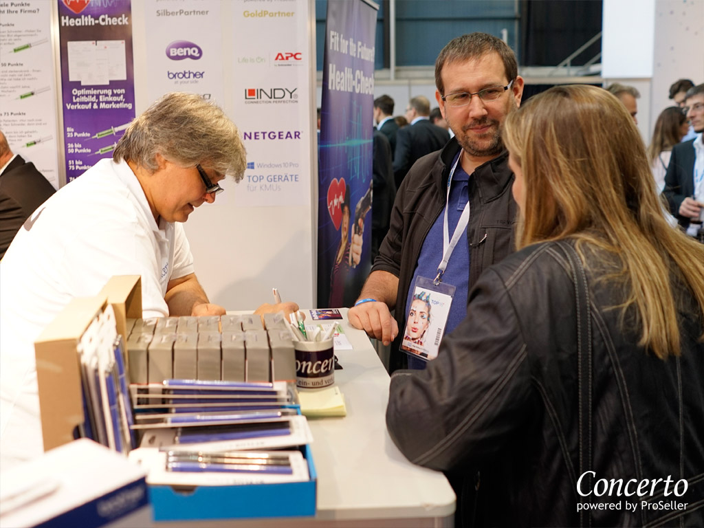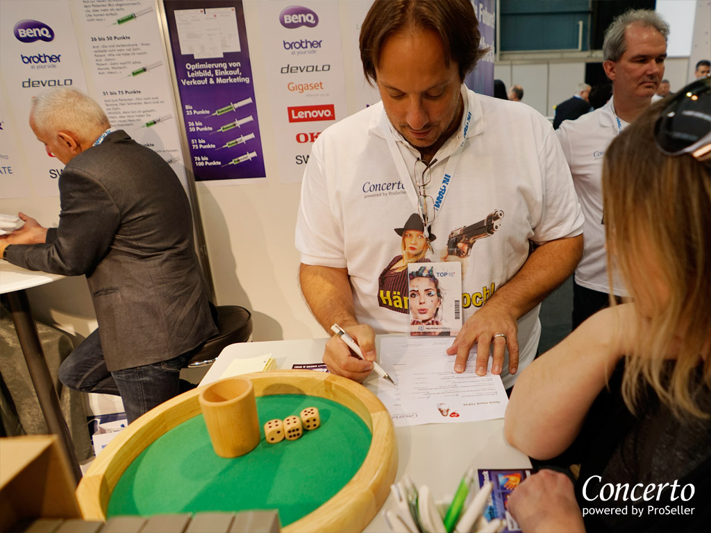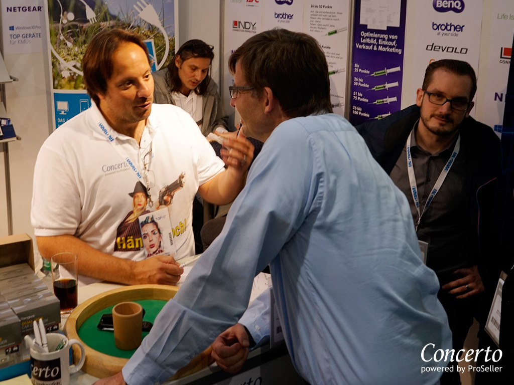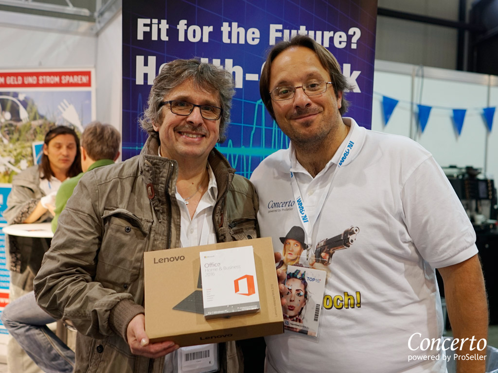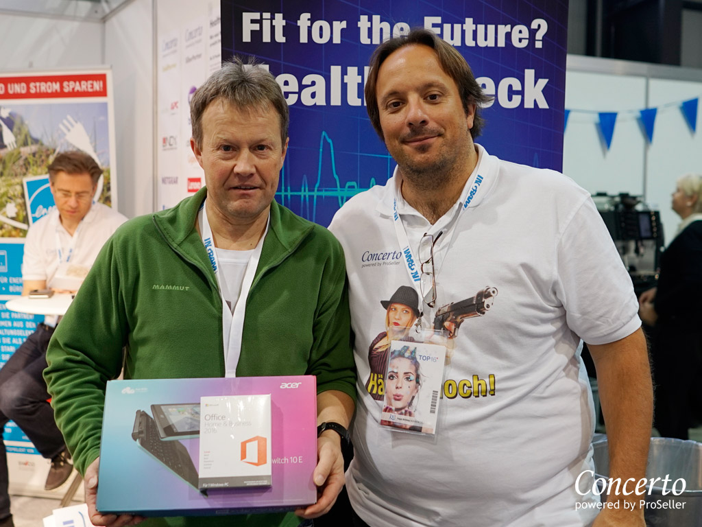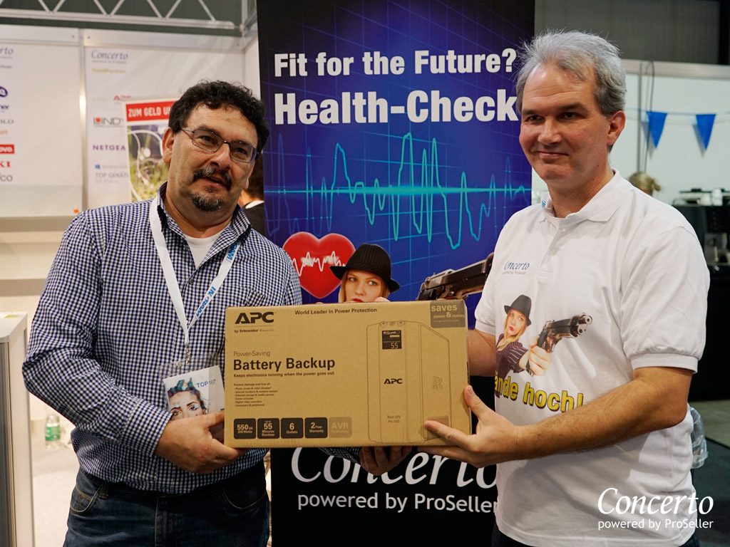 Schon einen Monat vor der TOP16 konnten die Reseller mit Concerto gewinnen. Während vier Wochen fanden Logo-Jagden mit den Sponsoren Lindy, APC, Windows und Netgear statt. Die 12 Gewinner freuten sich, Ihre Preise im Gesamtwert von über 4’700 Franken an der TOP16 entgegennehmen zu dürfen. Doch auch die anderen Standbesucher erwarteten tolle Sofortpreise.