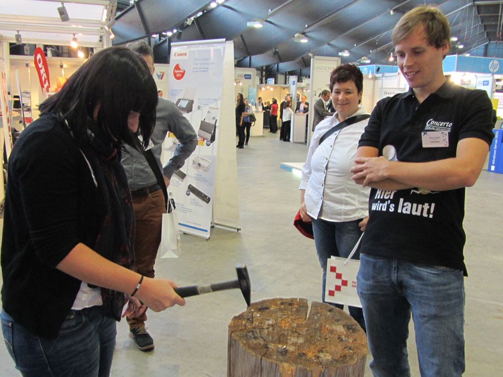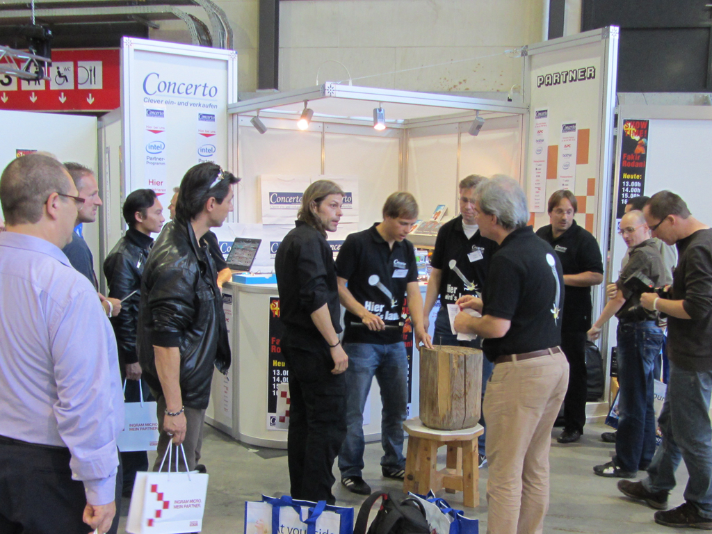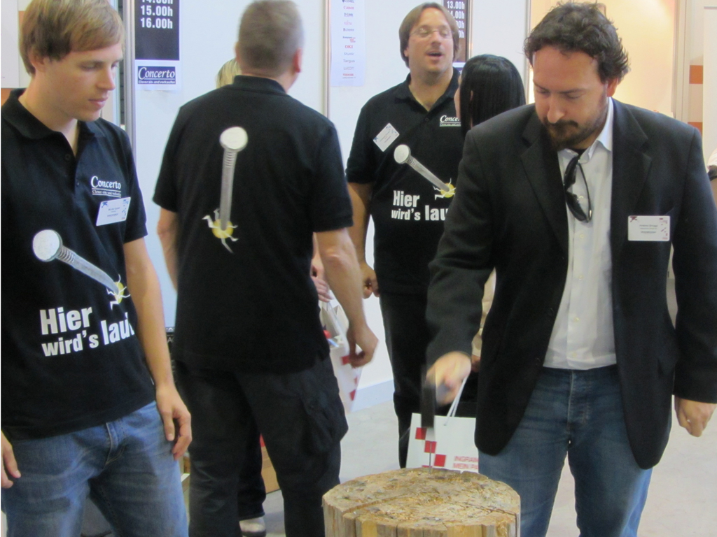 Neue Concerto-Dienstleistung OrderCockpit, Fakir mit coolen Nageltricks, tolle Preise beim Nagel-Wettbewerb und ein Workshop mit vielen Tipps für IT-Reseller… Am 24. Oktober 2013 durfte das ProSeller-Team an der diesjährigen IM.TOP viele Kunden und Interessierte begrüssen. Als besonderes Highlight zeigte ein richtiger Fakir seine Künste. Ausserdem konnten sich die Interessenten gleich selber überzeugen, dass man bei Concerto den Nagel auf den Kopf trifft. Voller Eifer wurde genagelt und gehämmert ;-)