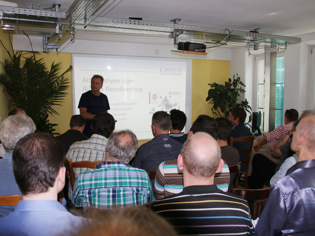 Welches ist die beste Alternative zum Alltron-Resellershop? Am 29. Juli, am 26. August sowie am 9. September verfolgten die geladenen Reseller in Herrliberg gespannt den Ausführungen von ProSeller-Geschäftsführers Alfred Rossi. Im Vergleich mit verschiedensten Marktlösungen konnte bei den Resellern der Concerto Fixfertig-WebShop Entry für 500 Franken pro Jahr klar punkten. Nach dem informativen Teil wartete auf die Teilnehmer ein feines Essen im Strozzi’s direkt am See. In bester Stimmung wurden weiter Erfahrungen ausgetauscht und Fragen beantwortet.