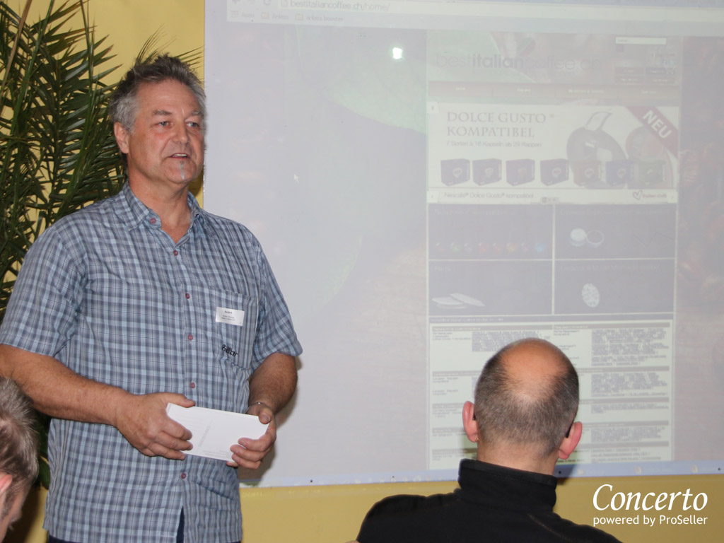 Die Transformation vom Ein-Bein-Reseller zum Drei-Bein-Reseller war das Hauptthema des Concerto-Informationsanlasses vom 26. Januar 2016. Thomas Czekala zeigte die Situation des ICT-Resellers in der Schweiz auf und wie sich dieser nach den Marktbedürfnissen neu ausrichten kann. Alfred Rossi informierte, wie ProSeller die Reseller mit den verschiedenen Concerto-Dienstleistungen in dieser Umbruchphase umfassend unterstützt. Auch die Partner ASSMANN, G DATA, Italian Coffee und Netgear überzeugten durch ihre spannenden Präsentationen von neuen Produkten und Dienstleistungen.
