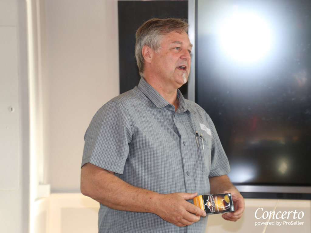 Nach der Pause rüttelte Alfred Rossi die Reseller mit bedenklichen Facts und Trends so richtig wach. In seiner bekannten, lockeren Art schockte und begeisterte Alfred Rossi seine Zuhörer gleichermassen. Aufgerüttelt wurden die Reseller vor allem wegen den Facts, welche er zur aktuellen Schweizer Marktsituation aufzeigte. Dass die Schweizer Reseller unter Beschuss sind, konnte wohl kein Händler übersehen. Dass es nun aber höchste Zeit ist zu handeln, wurde manchen Gästen erst im Laufe der Präsentation klar. Alfred Rossi liess die Händler jedoch nicht im Regen stehen, sondern präsentierte gleich mögliche Lösungen im Kampf um ein Stück des Schweizer Marktkuchens.