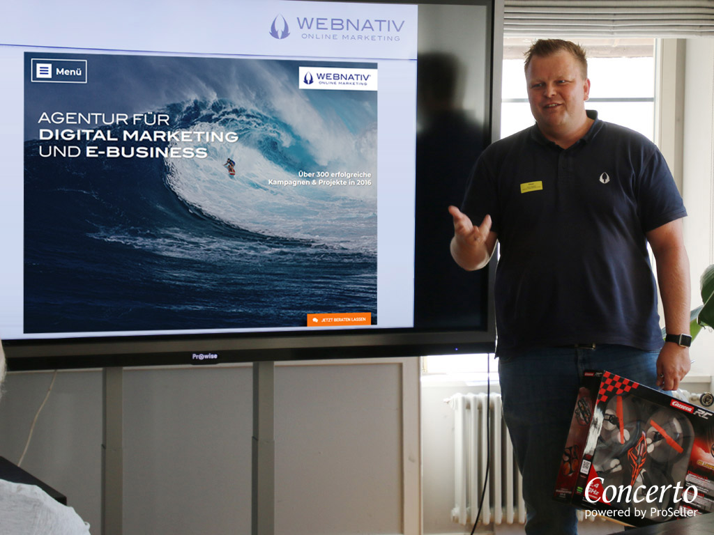Roberto D’Elia von sobu informierte die Reseller über das innovative und lukrative Empfehlungsmarketing auf Provisionsbasis. Der Einsatz des viralen Marketingsystems sobu eignet sich bestens zur Gewinnung von Neukunden. Oliver Podzun von Webnativ unterstützt die Reseller mit dem Seminar „Online-Marketing Optimierung“ für eine effiziente Online-Werbung. Um jeden Teilnehmer individuell beraten zu können, bietet er kostenlos eine vorgängige SEO-Analyse an. Als besonderes Geschenk verloste er unter den Interessenten am Anlass eine Drohne.