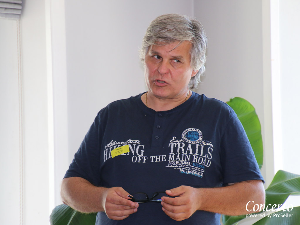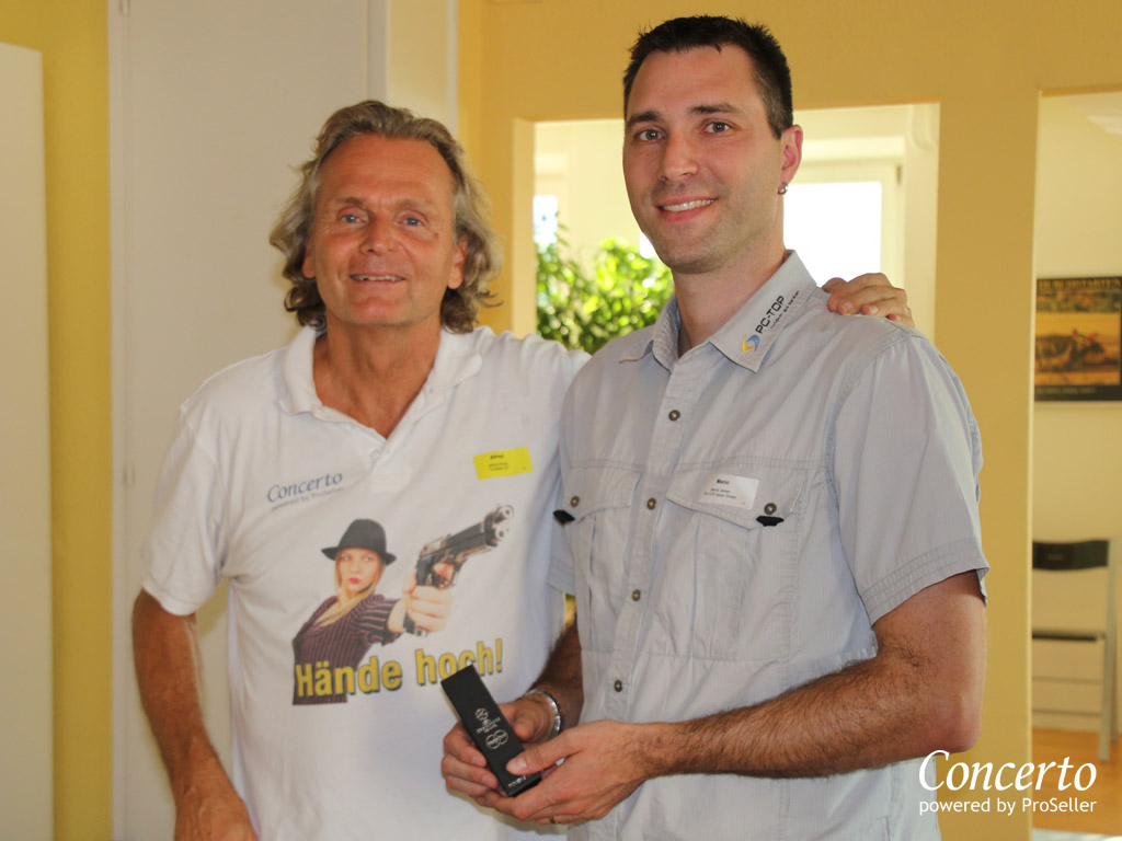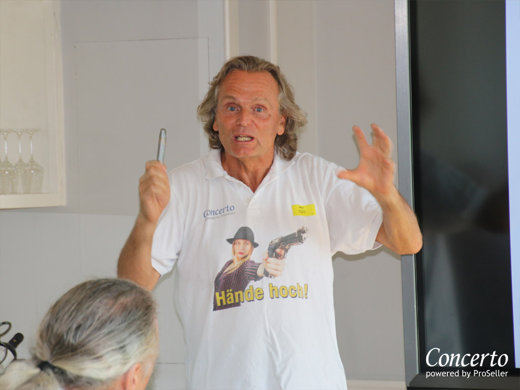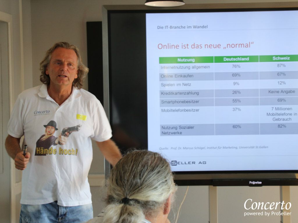 Alfred Rossi rüttelte im 2. Teil die Reseller wach: Er verdeutlichte anhand von Fakten eindrücklich die Trends im Schweizer Markt. Er betonte, dass ProSeller die Reseller im Kampf gegen die grosse Konkurrenz aus dem Ausland unterstützt. Neben der neuen Shopleistung von axxiv präsentierte er weitere hilfreiche Ideen zur Umsatzförderung wie das Bestellmanagement-Tool Concerto OrderCockpit, zwei umfassende Firmen-Checkups, das Lenovo Server-Partner Programm, Newsletter à discrétion und Concerto ProLeads.