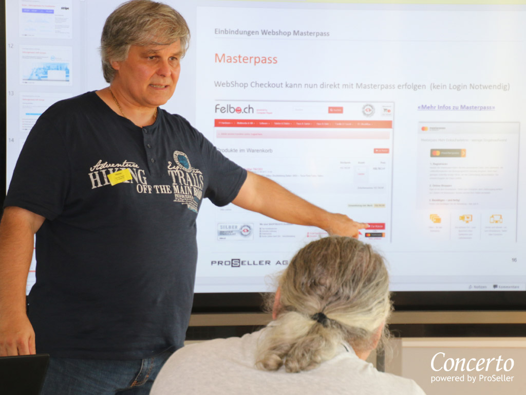 Die nächste Shopversion verfügt neu über eine Schnittstelle zu Masterpass. Diese bietet dem Kunden die Möglichkeit, beim Checkout-Prozess direkt via Masterpass ein Zahlungsmittel auszuwählen und umgehend zu bezahlen. Die Rechnung bzw. die Lieferung wird dann automatisch an die beim Zahlungsmittel hinterlegte Adresse geschickt. Das mühselige Ausfüllen von Login- und Adressdaten entfällt und der Checkout-Prozess wird dadurch stark vereinfacht. Andreas Dammann von Masterpass zeigte den interessierten Resellern die Vorteile dieser kundenfreundlichen und speditiven Zahlungsart detailliert auf.