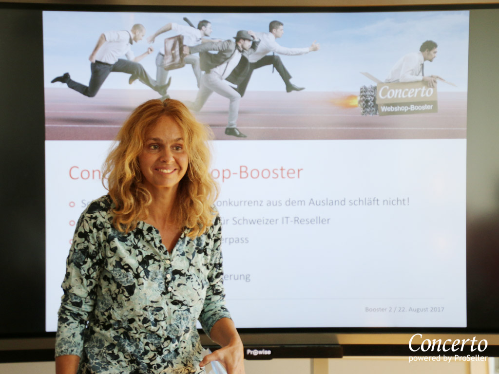 Der Webshop-Booster-Event wurde erstmals in den neuen Schulungsräumen der ProSeller in Herrliberg durchgeführt. Neu im Hause ist auch die Firma Rossi Communications vertreten. Reseller, die Unterstützung bei der Umsetzung ihrer Online-Werbung oder im Dialogmarketing brauchen, werden von Seraina Rossi umfassend und kompetent betreut.