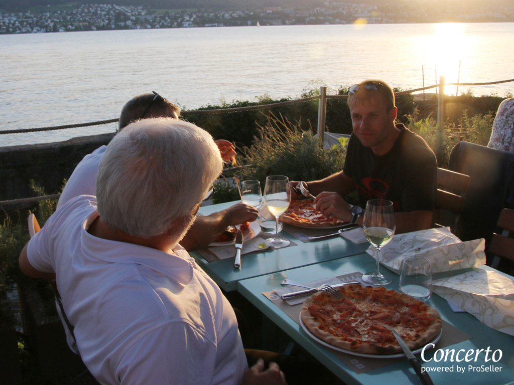 Im Anschluss folgte „Ferienstimmung pur“: Bis spät abends genossen die Gäste das schöne Wetter im Restaurant Strozzi’s direkt am Zürichsee. Das Concerto-Team dankt allen Resellern und Partnern für ihr Kommen und die vielen positiven Feedbacks!